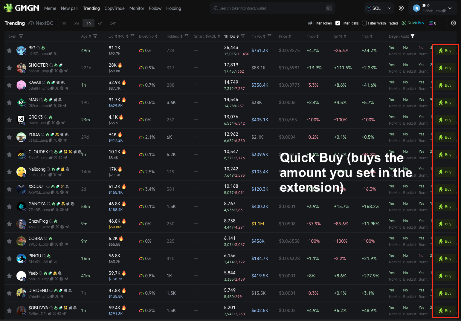 * **Quick Buy Buttons in Chain Currency** – One-click buy options in SOL or other chain currency. `(can be customized)`